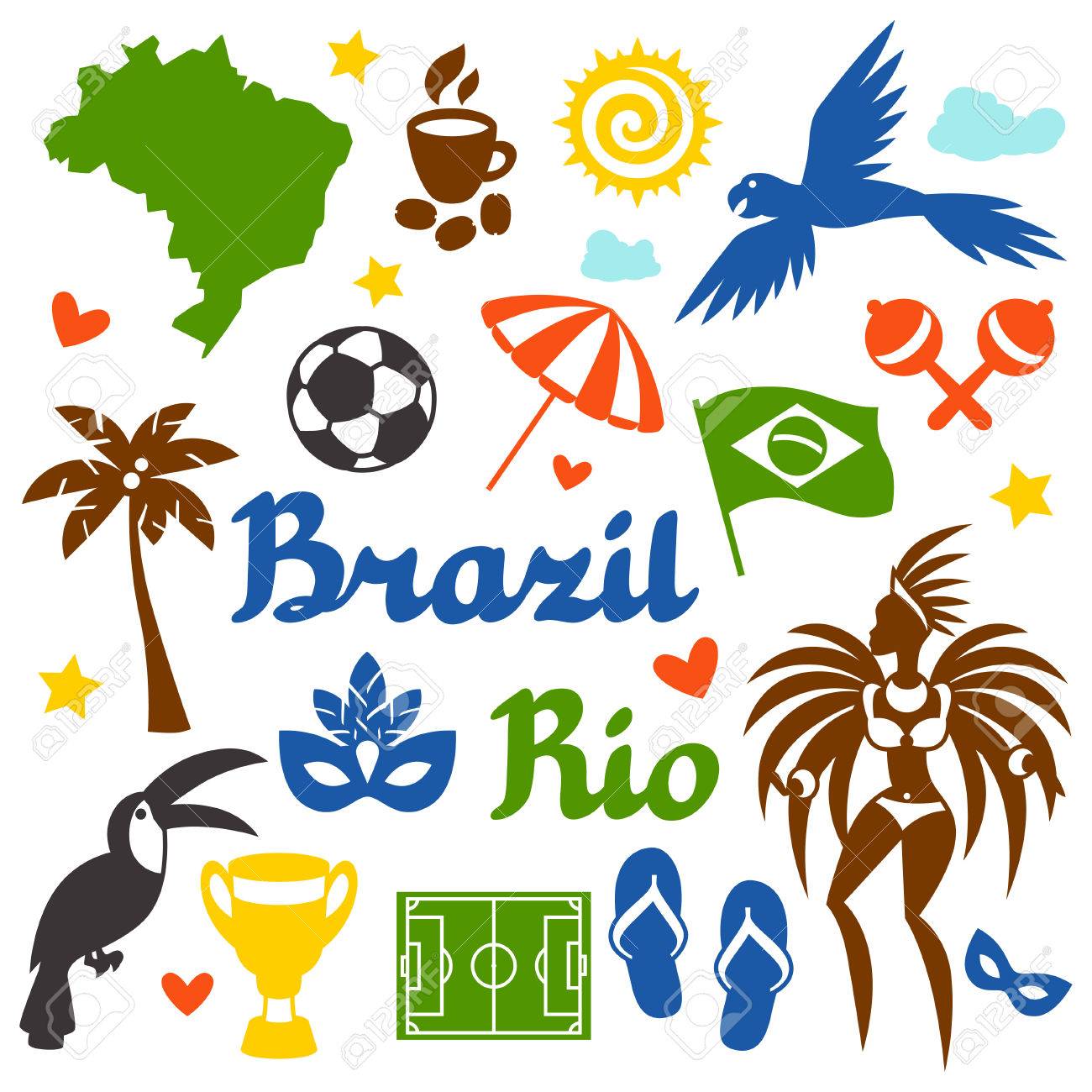 Coleccion De Brasil Estilizado Objetos Y Simbolos Culturales Ilustraciones Vectoriales Clip Art Vectorizado Libre De Derechos Image 48364759