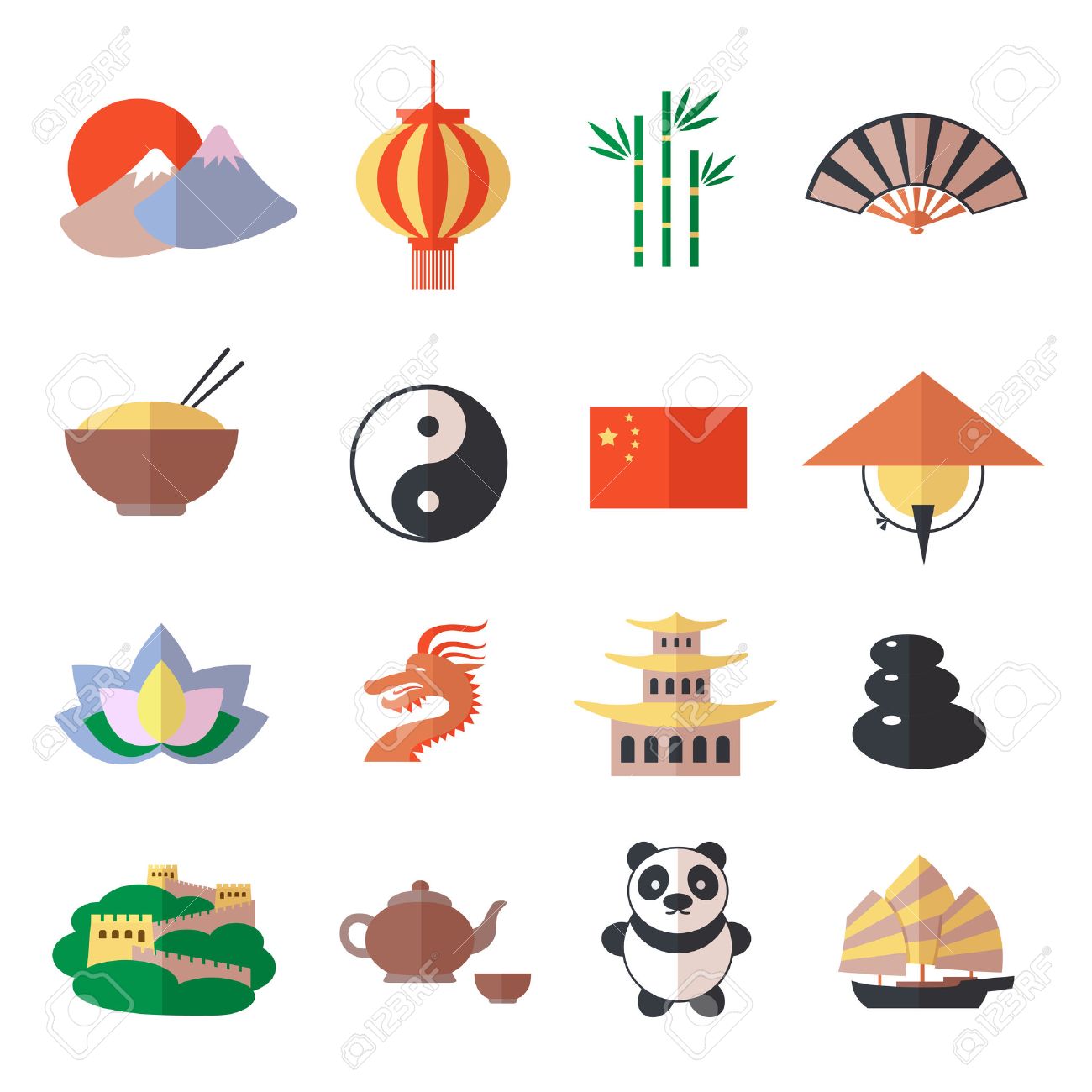 China Travel Asiatico Simbolos Culturales Tradicionales Iconos Conjunto Aislado Ilustracion Vectorial Ilustraciones Vectoriales Clip Art Vectorizado Libre De Derechos Image 31725812