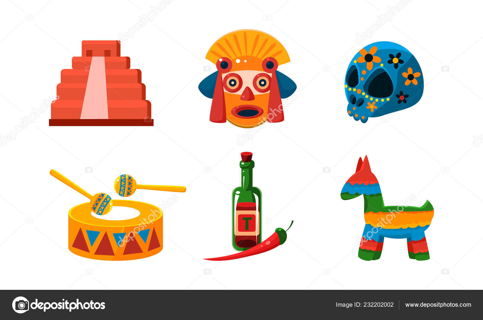 Conjunto De Iconos De Mexico Vector De Simbolos Culturales Mexicanos Ilustracion Sobre Fondo Blanco Vector De Stock C Topvectors 232202002