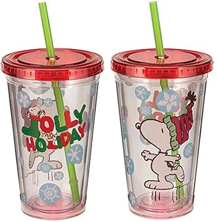 Cacahuetes Snoopy Alegre De Acrilico Vaso De Viaje De La Bebida De Navidad Amazon Es Hogar