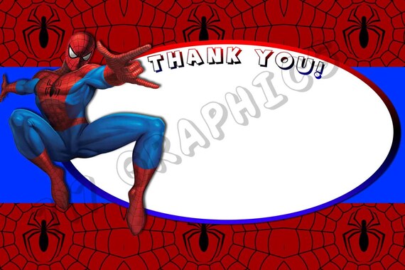 Spiderman 4 X 6 Gracias Tarjeta Para Imprimir Etsy