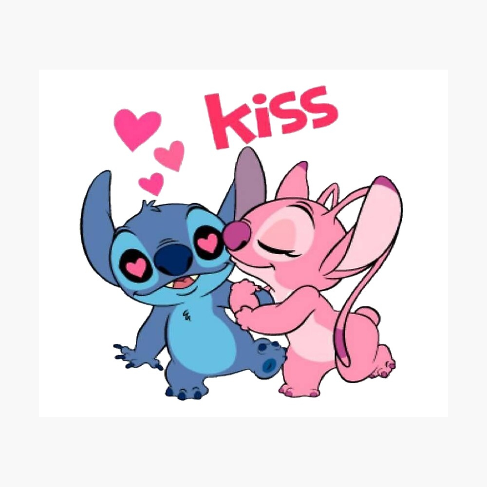 Stitch And Angel Kiss Love Poster By Lindfitzgerald Redbubble