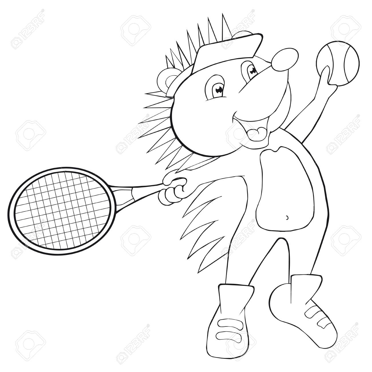 Dibujo Para Colorear Erizo Juega Al Tenis Estilo De La Historieta Clip Art Para Los Ninos Ilustraciones Vectoriales Clip Art Vectorizado Libre De Derechos Image 89110021
