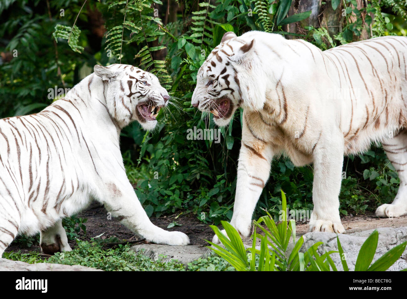 Retrato De Una Pareja De Tigres Blancos De Bengala Fotografia De Stock Alamy
