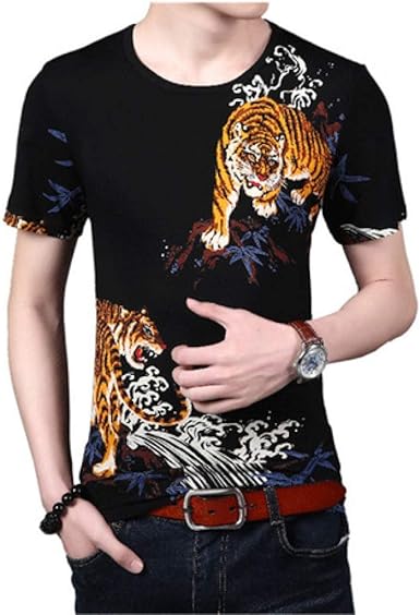 Whltx Camiseta De Algodon De Cuello Redondo Con Cuello Redondo De Tigre Con Impresion Tridimensional Para Hombres Negra Xxxl Camisetas Camisetas Para Amazon Es Ropa Y Accesorios