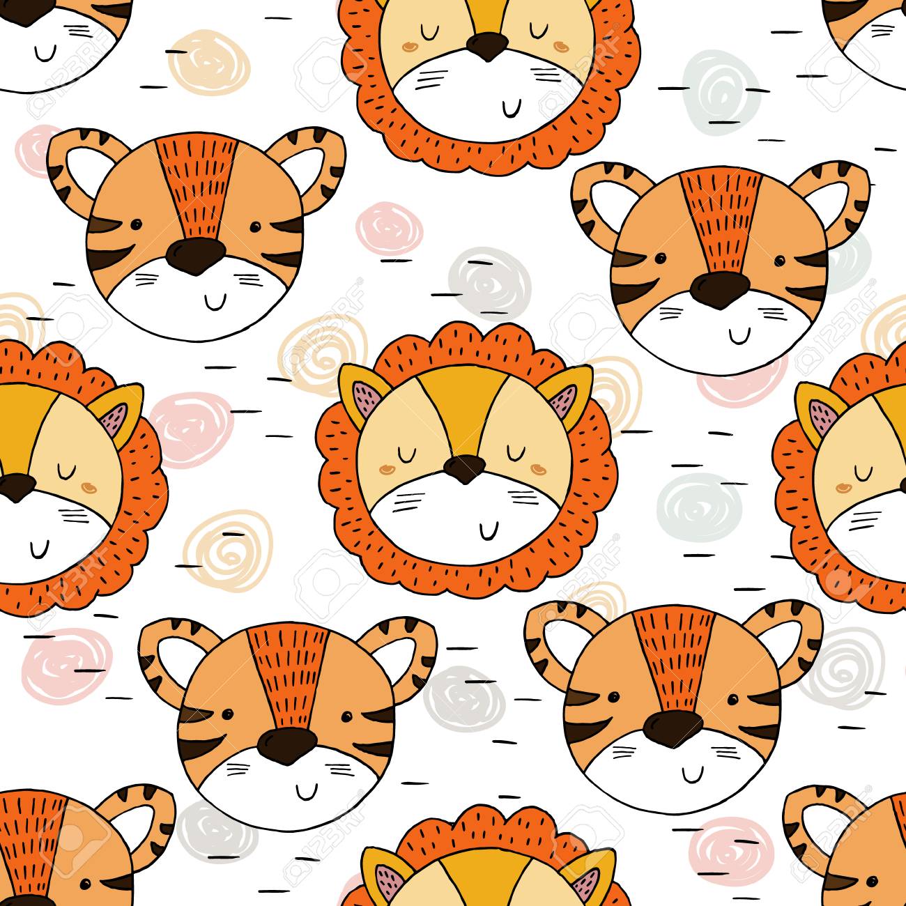Lindo Estampado De Tigre Y Leon Para Ninos Ilustraciones Vectoriales Clip Art Vectorizado Libre De Derechos Image 81390347