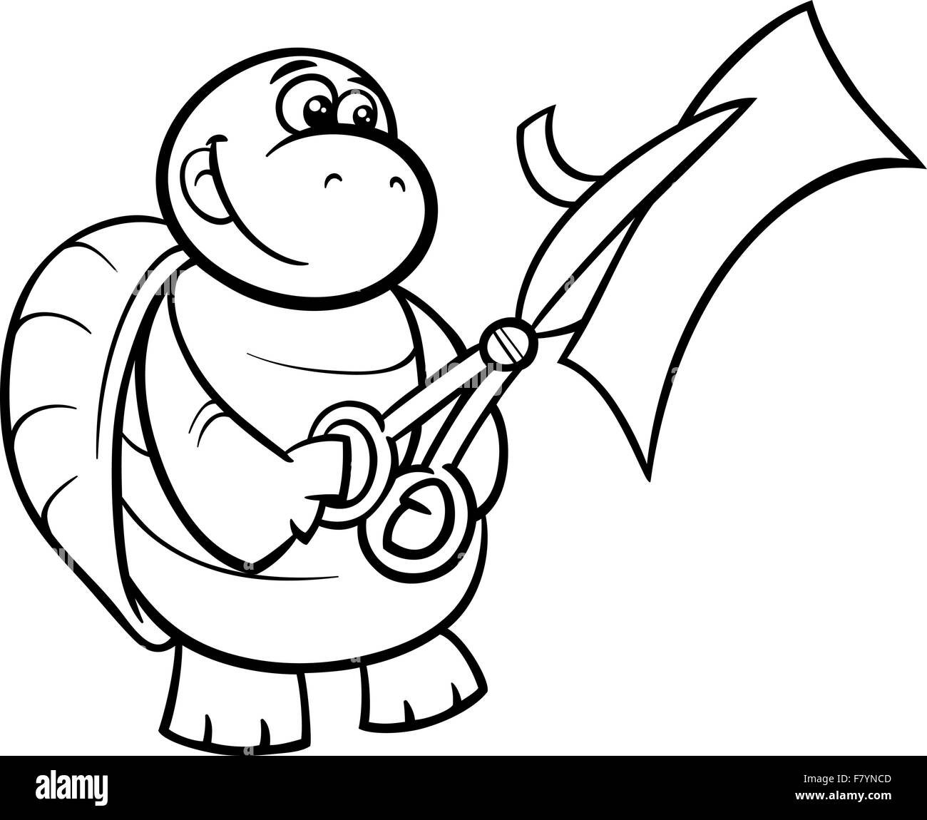 Tortuga Con Tijeras Pagina Para Colorear Imagen Vector De Stock Alamy