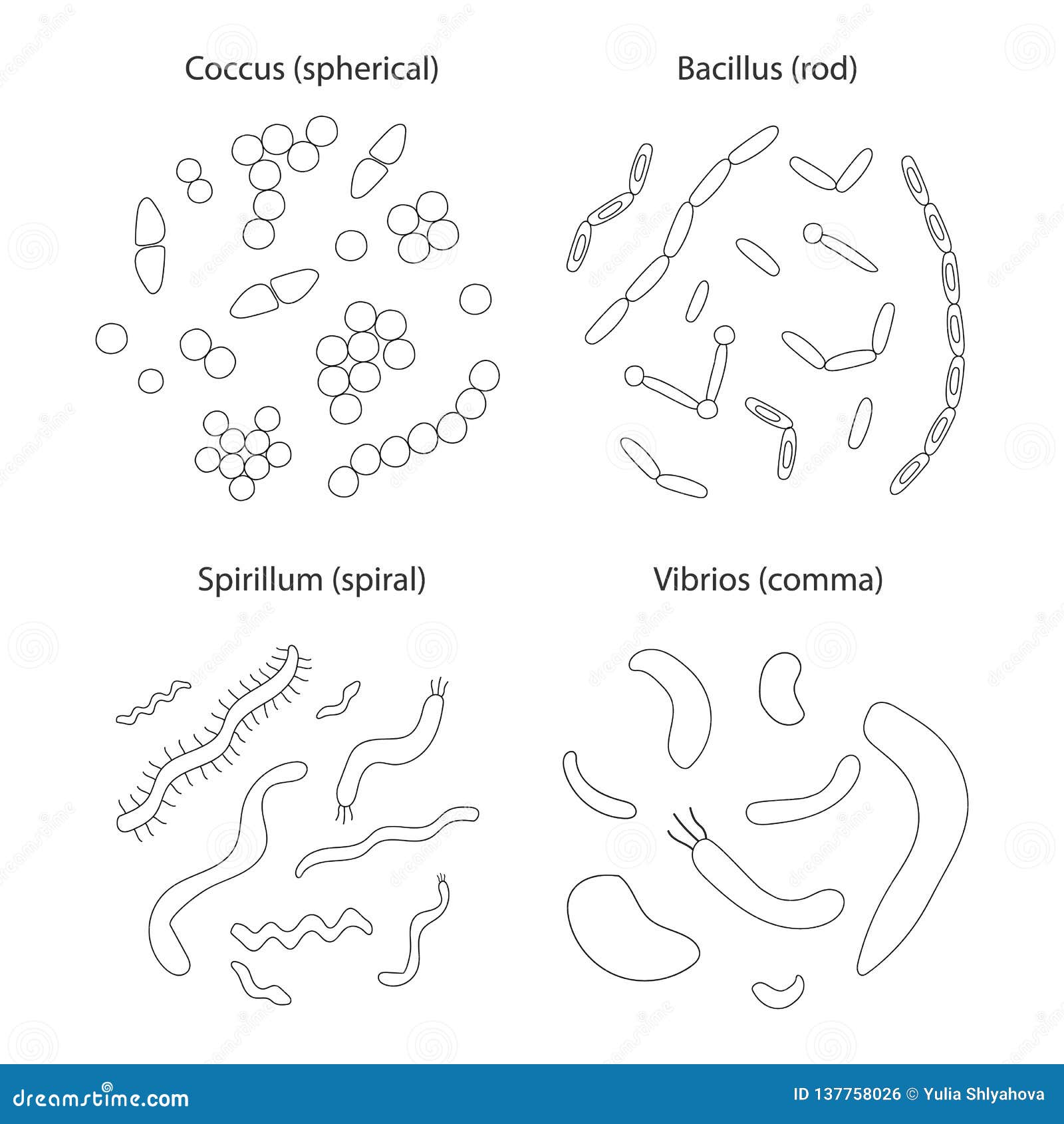 Conjunto De Diferentes Tipos De Bacterias En Blanco Y Negro Ilustracion Vectorial Imagen Vector De Stock Alamy