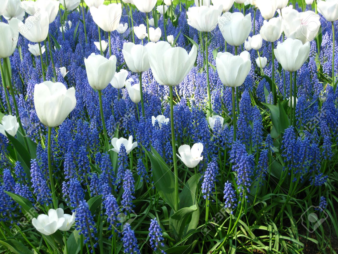 Tulipanes Blancos Y Azules De Uva Comun Hyacints Fotos Retratos Imagenes Y Fotografia De Archivo Libres De Derecho Image 4772778