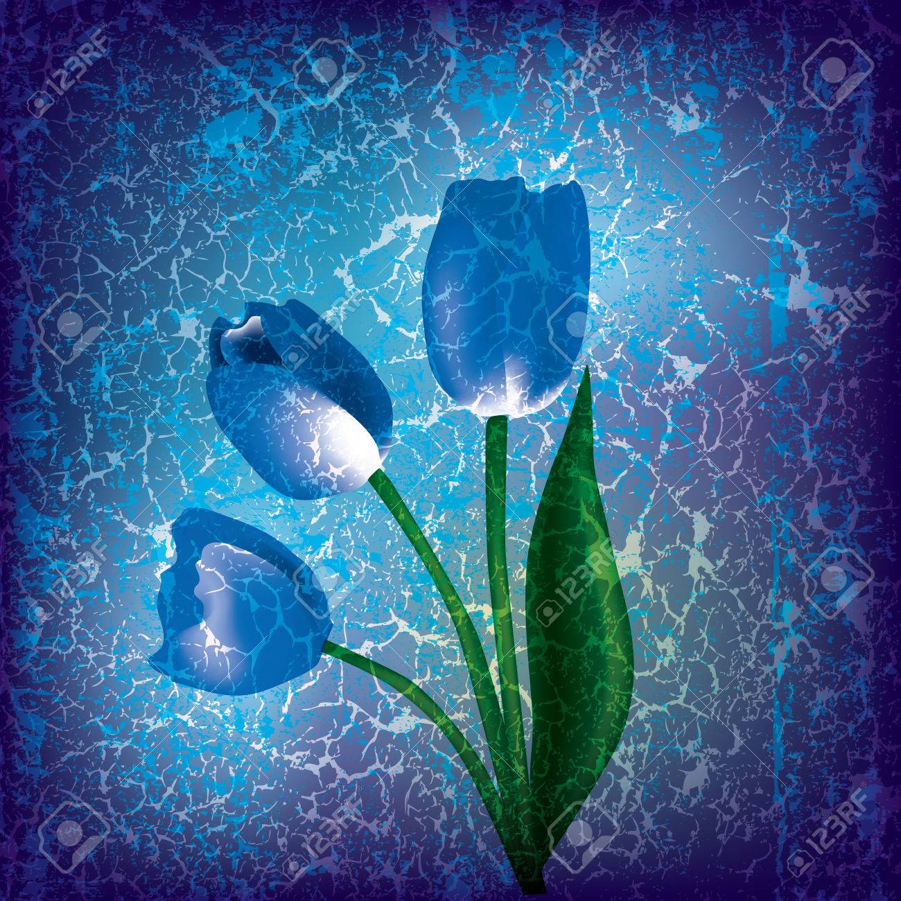 Ilustracion De Grunge Abstracto Con Tulipanes Azules Sobre Fondo Agrietado Ilustraciones Vectoriales Clip Art Vectorizado Libre De Derechos Image 8953222