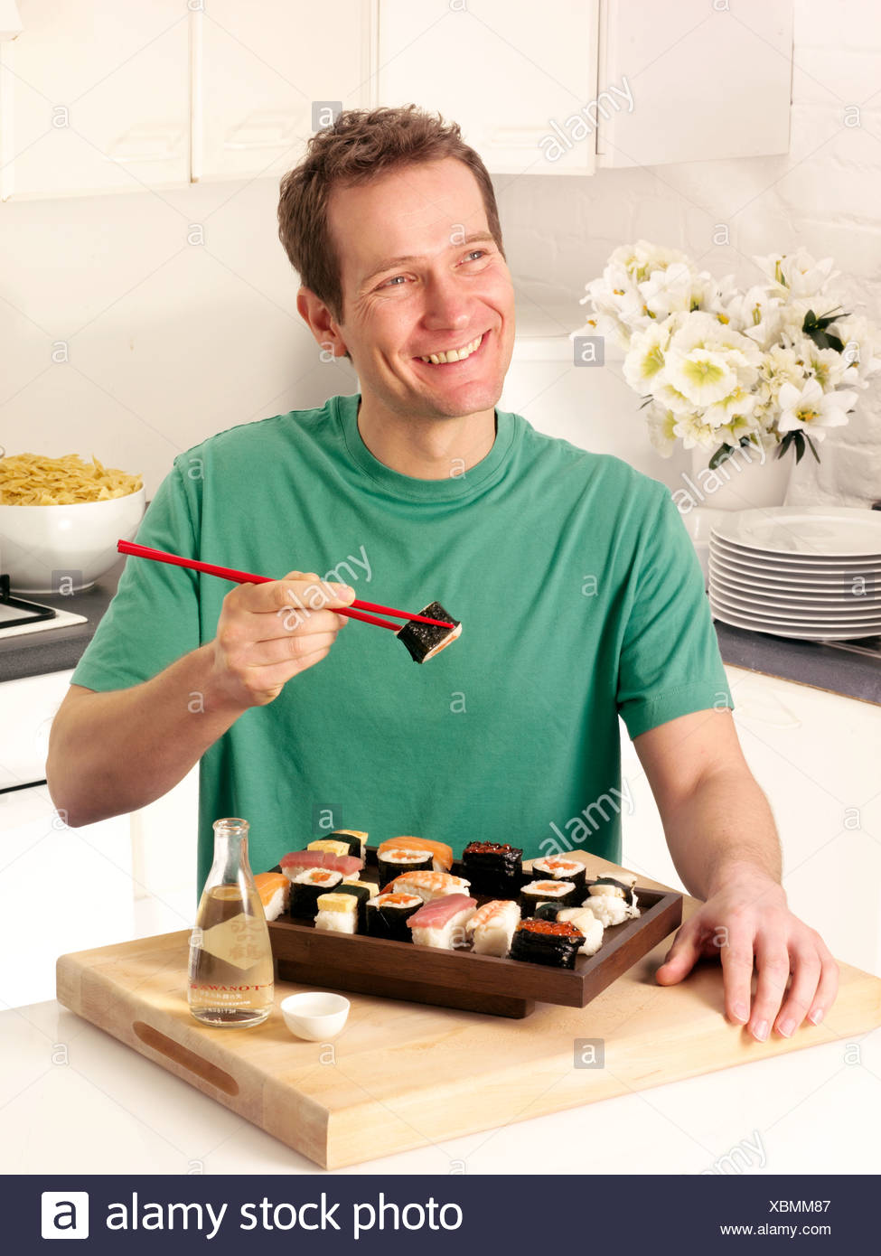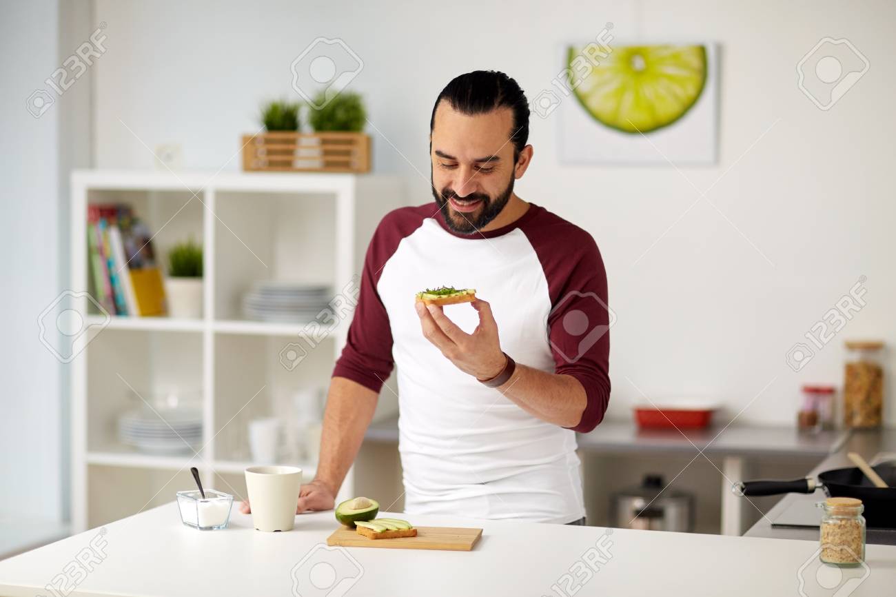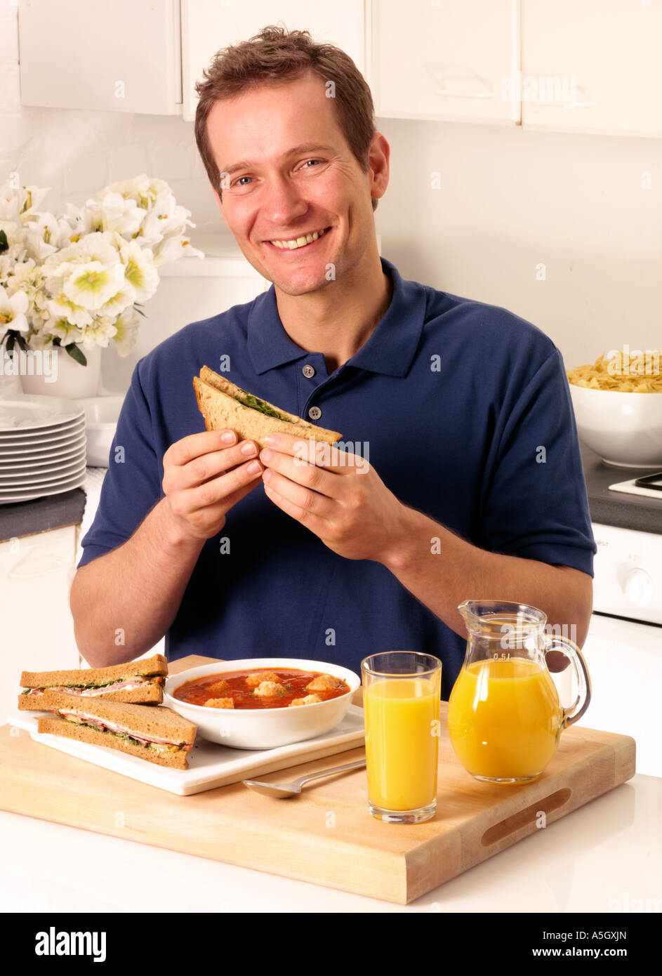 El Hombre En La Cocina Comiendo Sandwich Fotografia De Stock Alamy