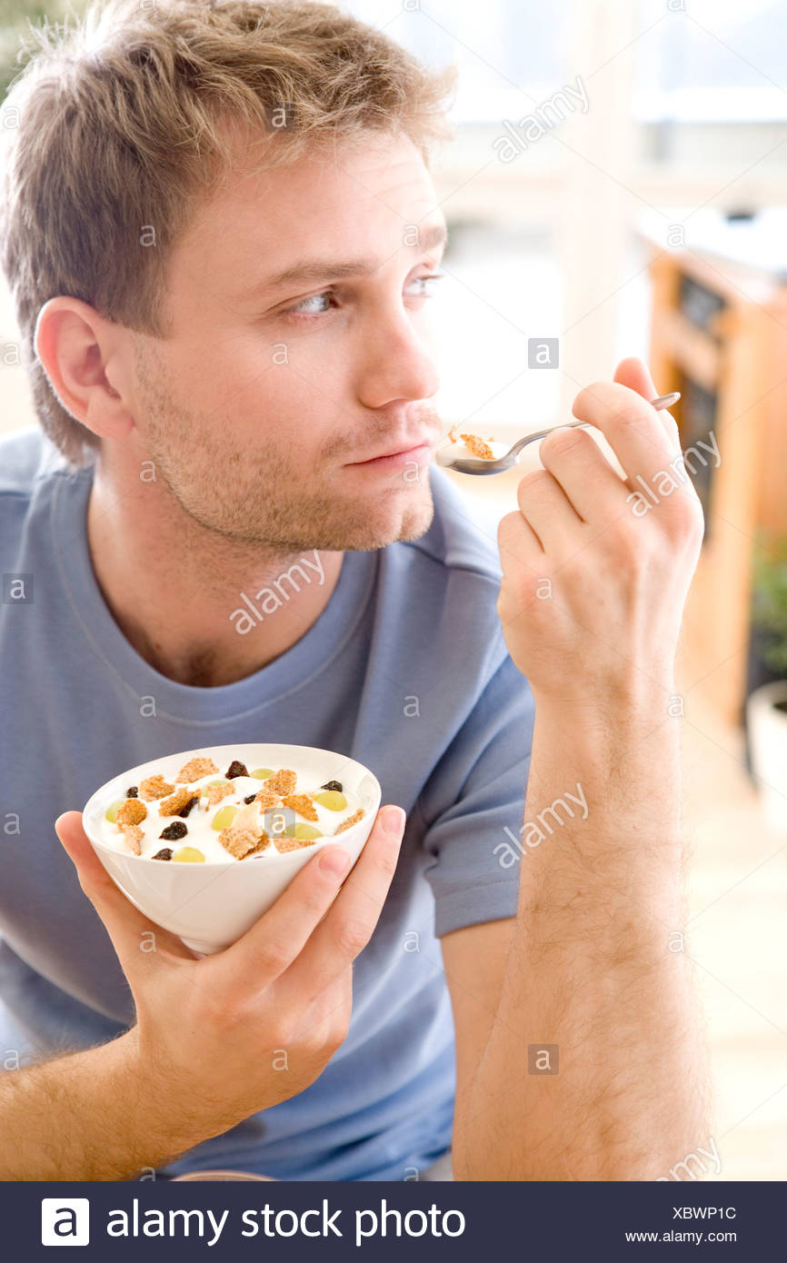 Hombre Comiendo Cereales De Desayuno Fotografia De Stock Alamy