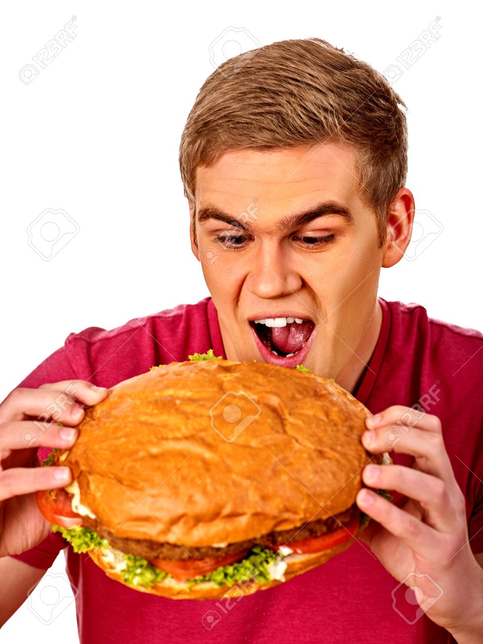 Fotografia De Un Hombre Comiendo Una Deliciosa Hamburguesa Fotos Retratos Imagenes Y Fotografia De Archivo Libres De Derecho Image 54754885