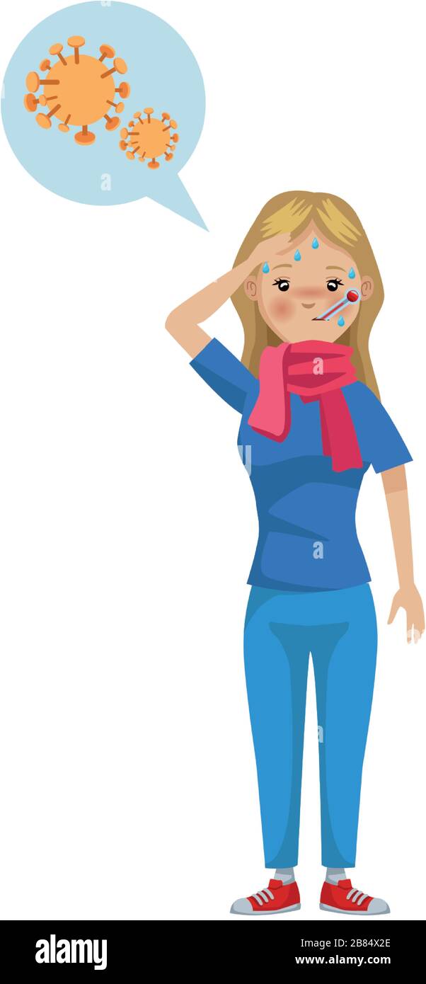 Mujer Enferma Con Fatiga Fiebre Fria Diseno De Covid 19 Enfermedad Epidemica Sintomas Y Tema Medico Ilustracion Vectorial Imagen Vector De Stock Alamy