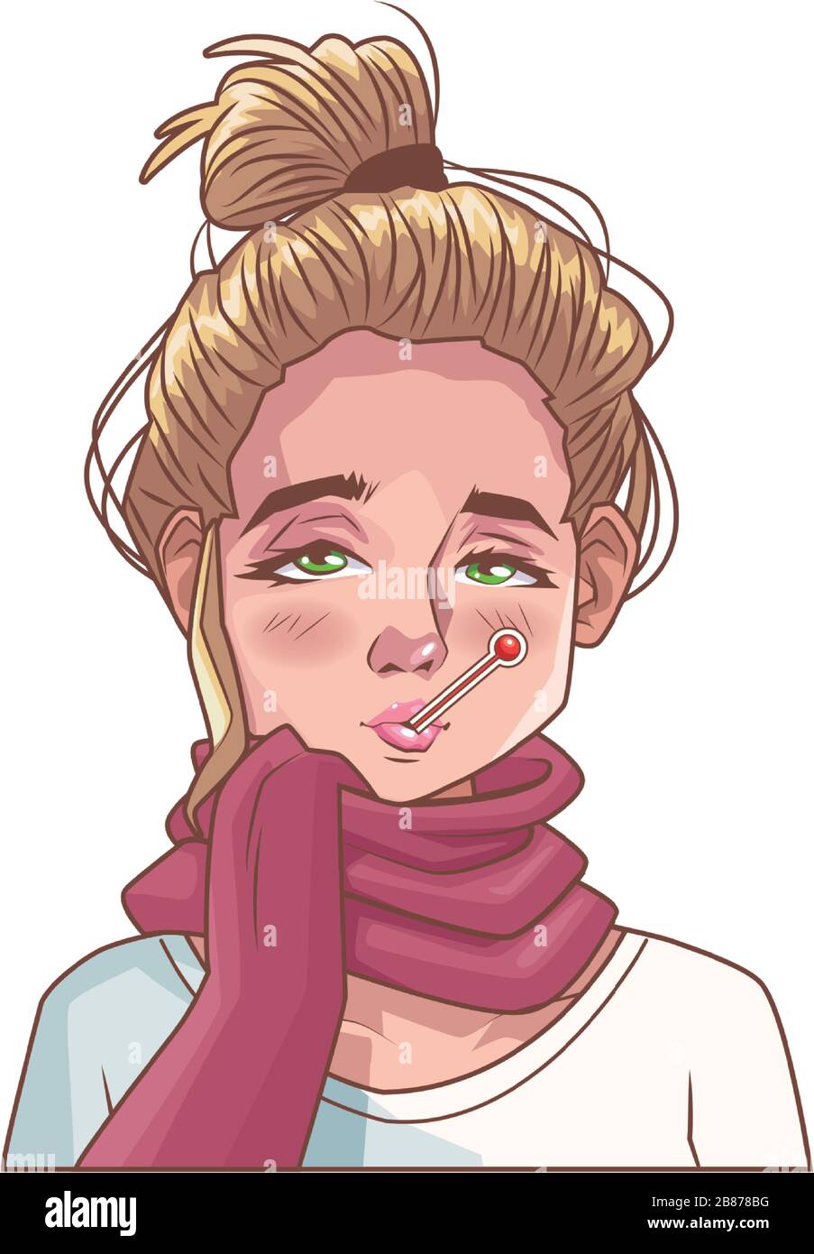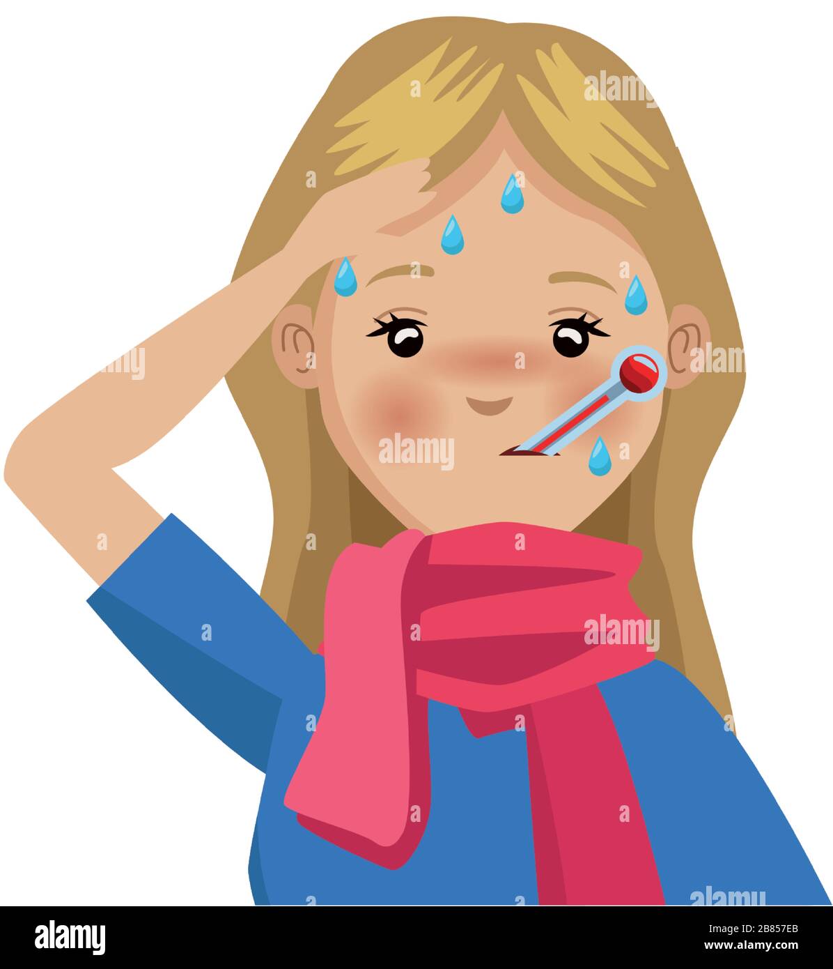 Mujer Enferma Con Termometro Sintomas De Covid19 Imagen Vector De Stock Alamy