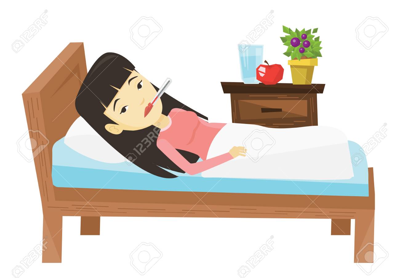 Mujer Enferma Con El Termometro Tendido En La Cama Ilustraciones Vectoriales Clip Art Vectorizado Libre De Derechos Image 76268708