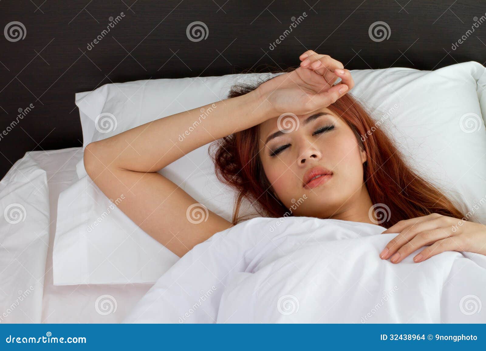 Mujer Enferma Atrapada Frio Y Fiebre O Dolor De Cabeza Y Acostado En La Cama En Su Casa Hembra Asiatica Fotos Retratos Imagenes Y Fotografia De Archivo Libres De Derecho Image 47063834