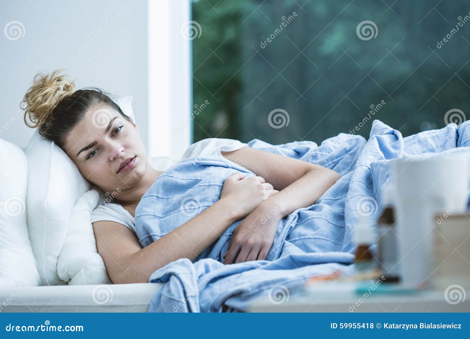 Mujer Enferma Que Miente En Cama Foto De Archivo Imagen De Miente Cama 59955418