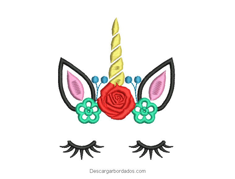 Bordado Rostro De Unicornio Con Rosa Para Bordar Descargar Disenos De Bordados