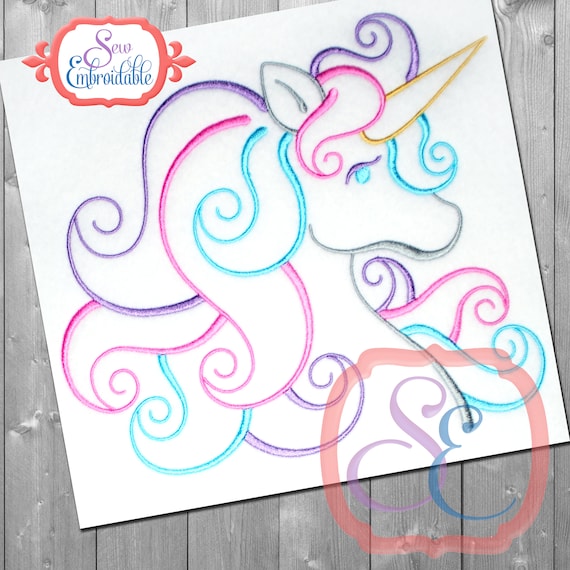 Unicornio Contorno Raso Bordado Diseno Para Bordado De Maquina Etsy