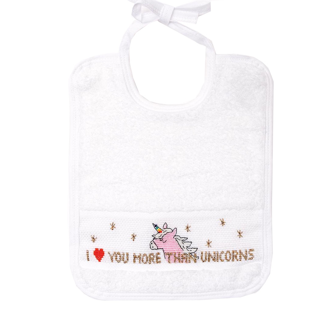 Kit Completo Para Bordar A Punto De Cruz 28x28 Cm Babero Unicornio Perles Co