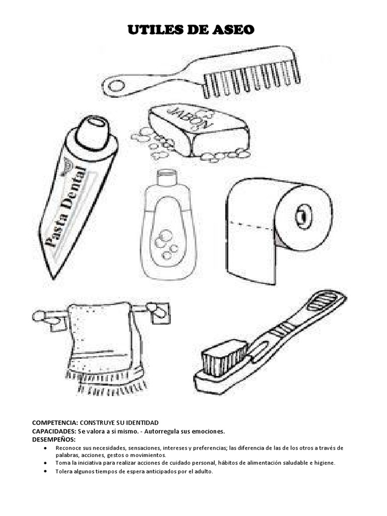 Utiles De Aseo Para Colorear Habitos De Higiene Personal Utiles De Aseo Utiles De Aseo Personal