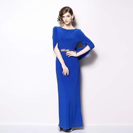 Zysymx La Primavera Y El Otono Nuevos Vestidos Azules El Temperamento De Las Mujeres Dividio La Moda Hermosa Hermosa Maxi Vestido Sin Mangas Vestidos Del Grupo De Mujeres Azul L Amazon Es Hogar
