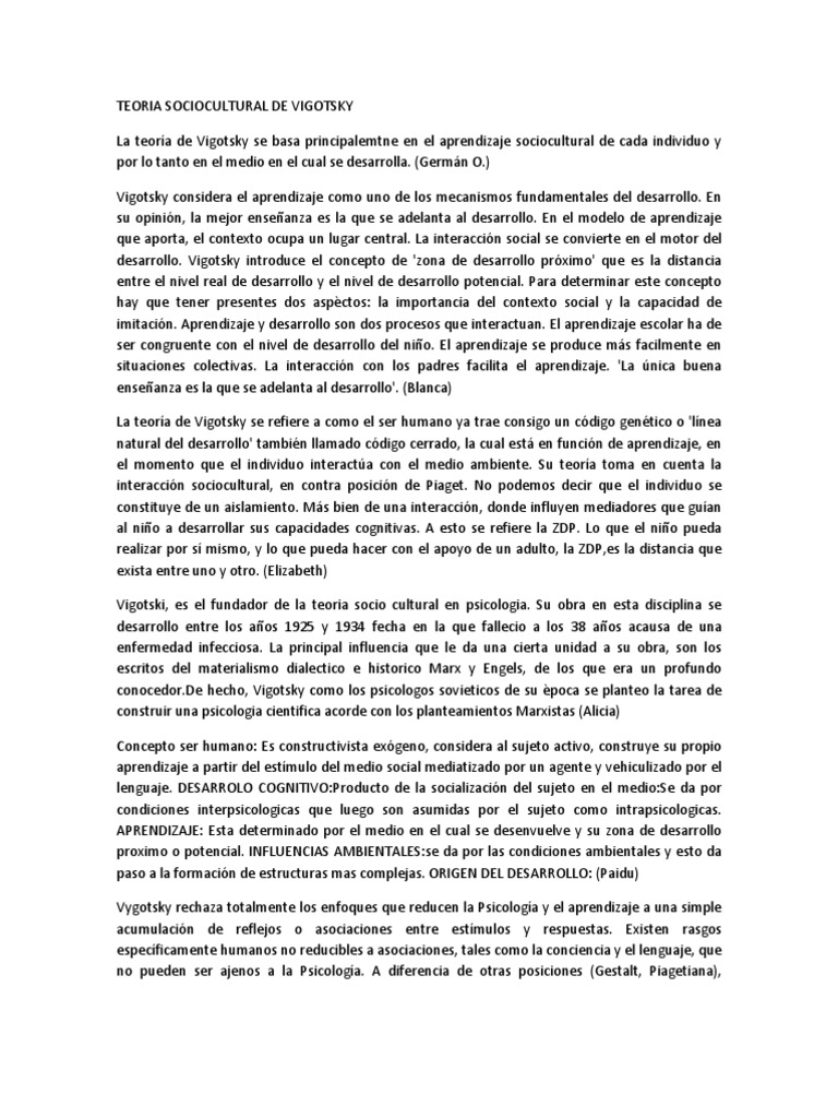 Teoria Sociocognitiva De Vigotsky Apuntes De Psicologia Docsity
