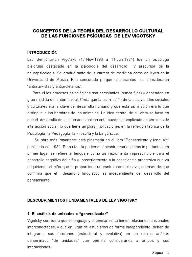 Teoria De Lev Vigotsky Apuntes De Ciencias De La Educacion Docsity