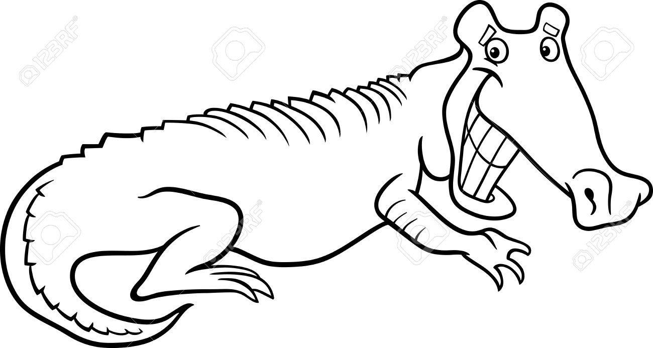Ilustracion De Dibujos Animados En Blanco Y Negro De Cocodrilo Ilustraciones Vectoriales Clip Art Vectorizado Libre De Derechos Image 71538487