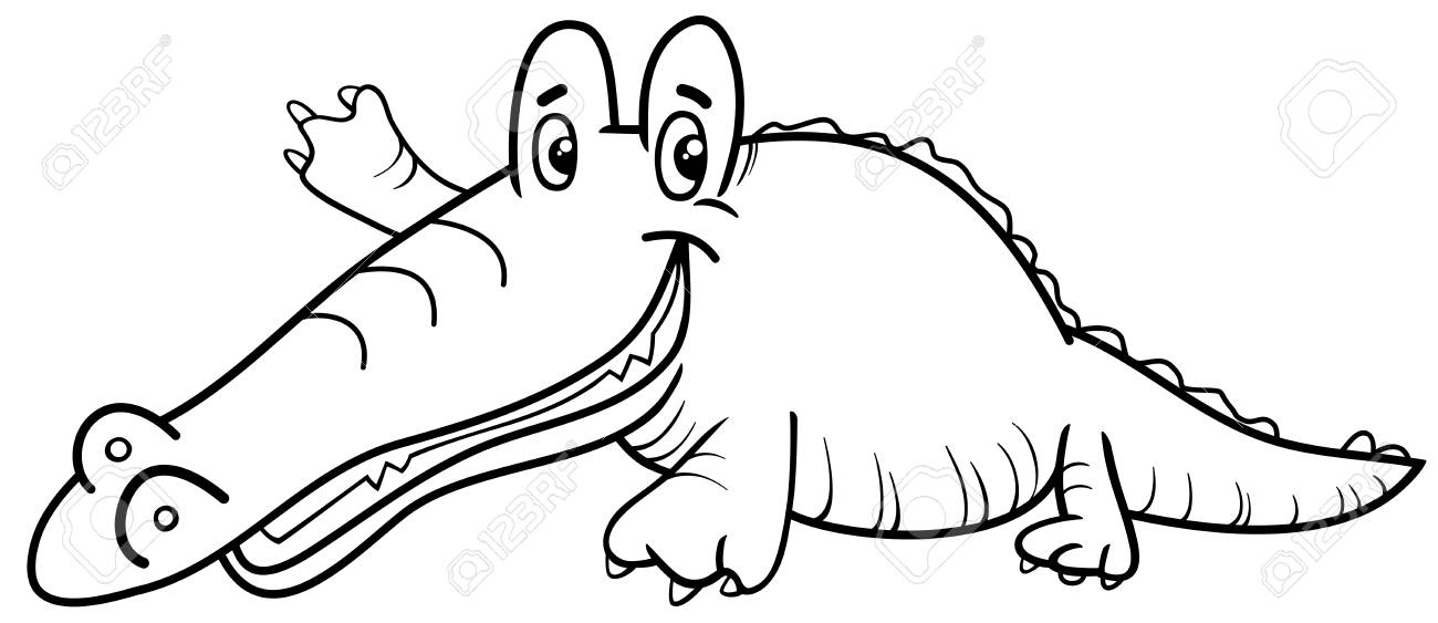 Ilustracion De Vector De Dibujos Animados De Cocodrilo En Blanco Y Negro Para Colorear Vector Dibujado De Linea Ilustraciones Vectoriales Clip Art Vectorizado Libre De Derechos Image 80493607