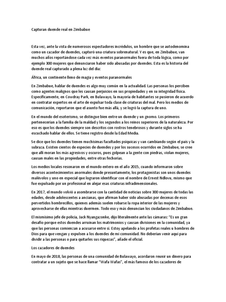 Capturan Duende Real En Zimbabue El Pensante