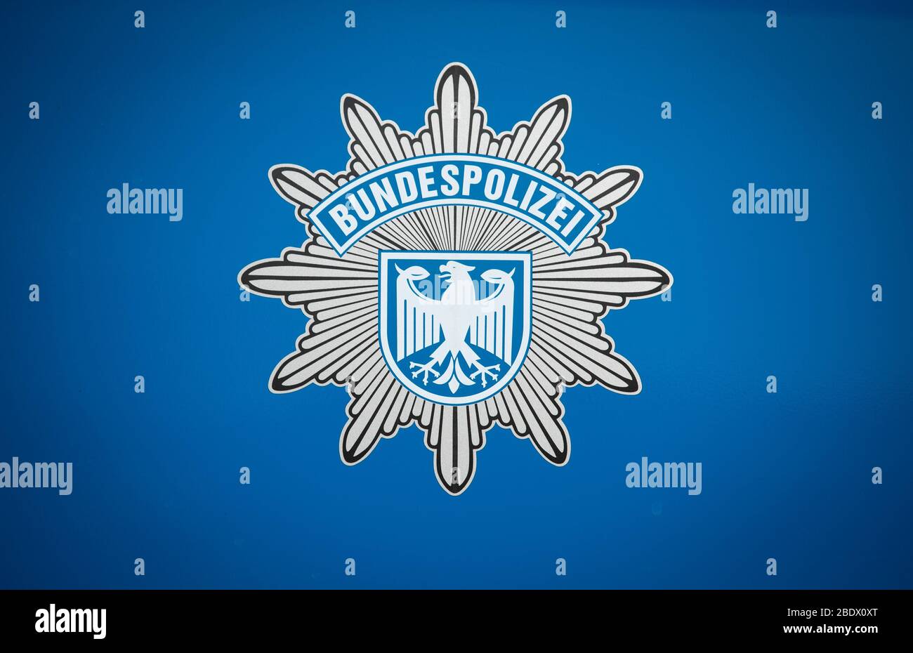 10 De Abril De 2020 Baja Sajonia Nordhorn Un Escudo De La Policia Federal Se Ha Quedado Atascado En Un Coche De Empresa Foto Friso Gentsch Dpa Fotografia De Stock Alamy