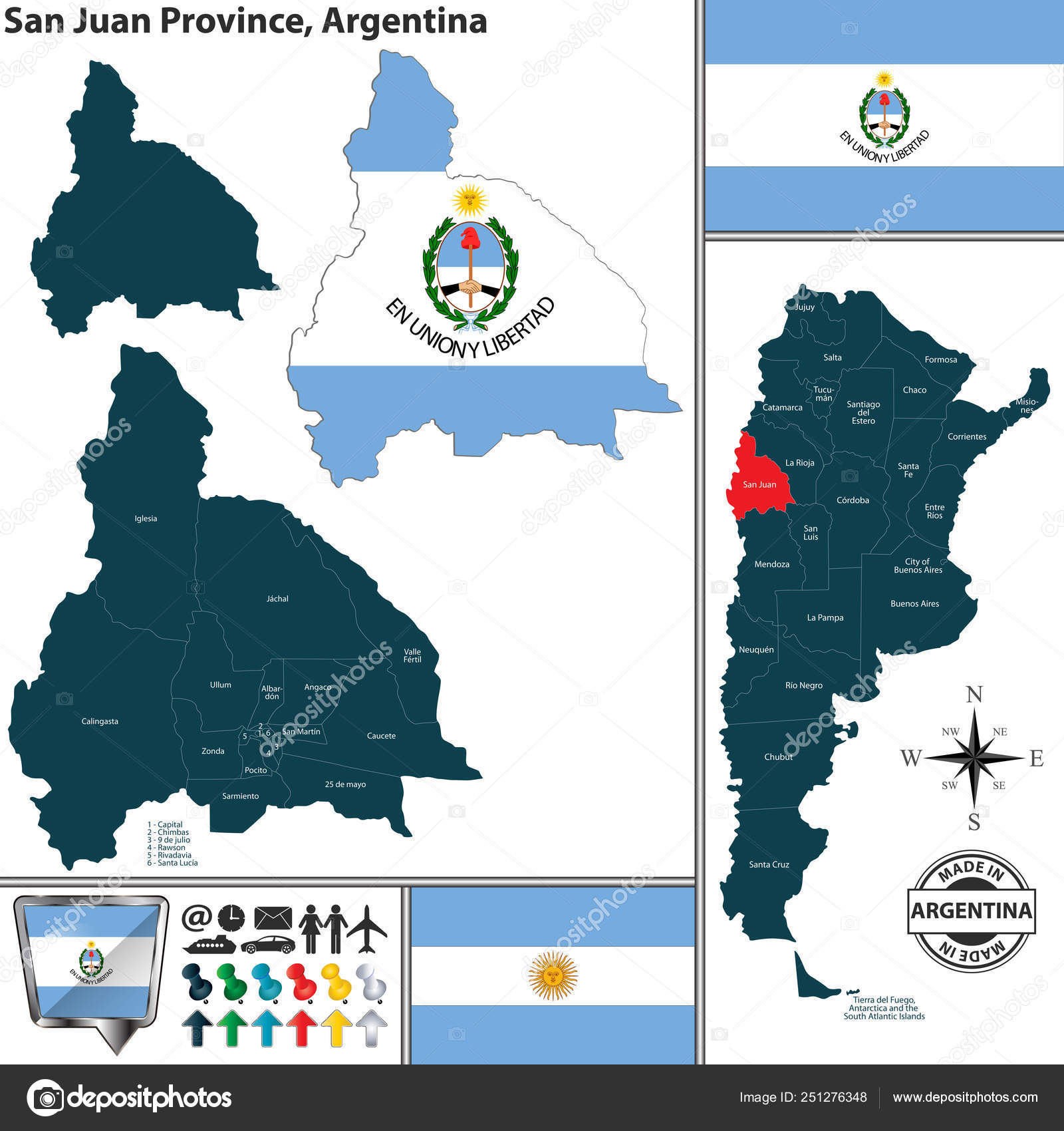 Mapa De San Juan De Argentina Con La Ilustracion De La Bandera Nacional Argentina Ilustraciones Vectoriales Clip Art Vectorizado Libre De Derechos Image 88499345