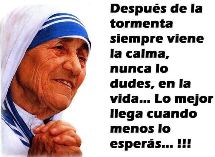 Santa Madre Teresa Sur Twitter Despues De Cada Tormenta Siempre Viene La Calma Nunca Lo Dudes En La Vida Lo Mejor Llega Cuando Menos Lo Esperas Santa Madre Teresa Ejemplo De Vida