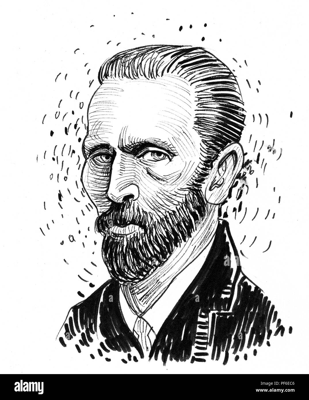 Vincent Van Gogh Ilustracion En Blanco Y Negro De Tinta Fotografia De Stock Alamy