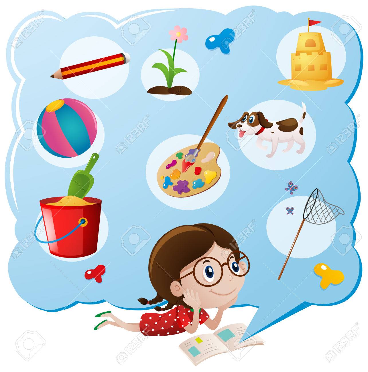 Chica Pensando En La Ilustracion De Cosas Favoritas Ilustraciones Vectoriales Clip Art Vectorizado Libre De Derechos Image 75094822