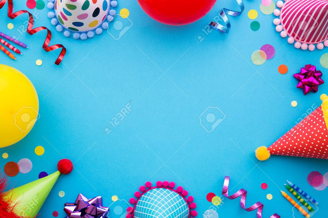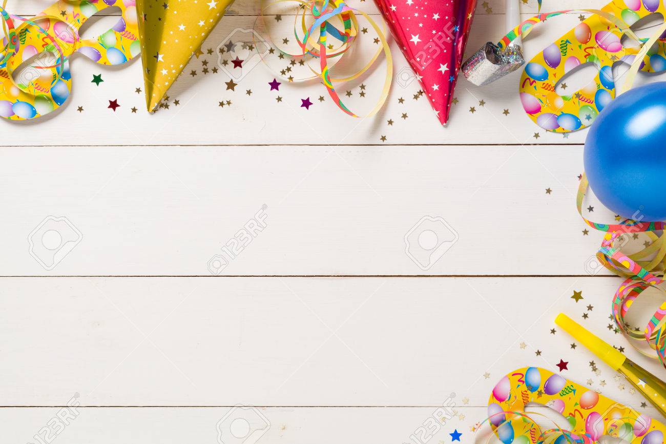 Fondo De Fiesta De Cumpleanos Con Sombreros De Fiesta Y Serpentinas Fotos Retratos Imagenes Y Fotografia De Archivo Libres De Derecho Image 77211127