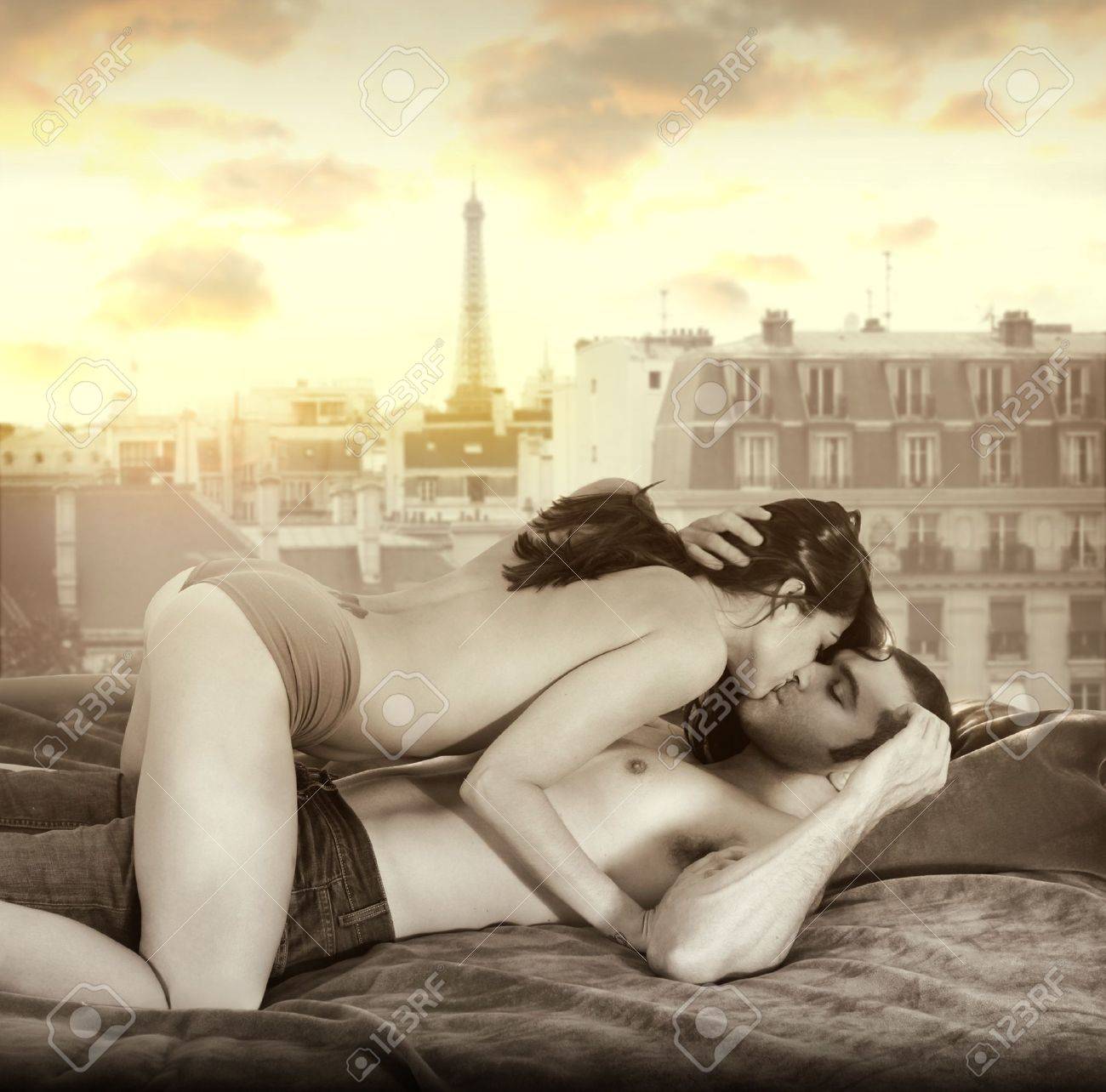 Pareja Joven Sexy Haciendo El Amor Apasionadamente En La Cama Contra La Ventana Que Daba A Paris Horizonte Con Tonos Sepia Retro Vendimia Fotos Retratos Imagenes Y Fotografia De Archivo Libres De