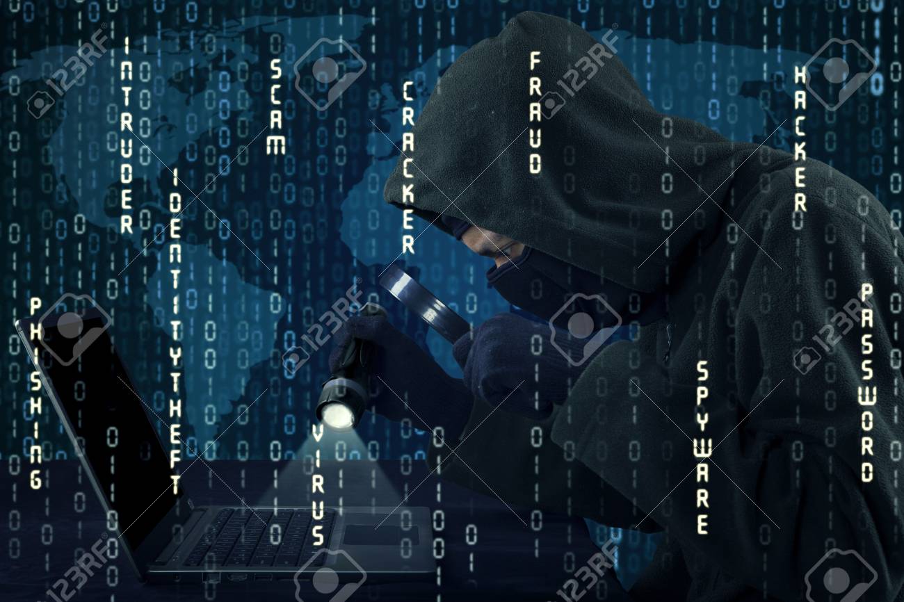 Imagen De Hacker Varon Usando Lupa Y Linterna Para Robar La Informacion En La Computadora Portatil Fotos Retratos Imagenes Y Fotografia De Archivo Libres De Derecho Image 46391109