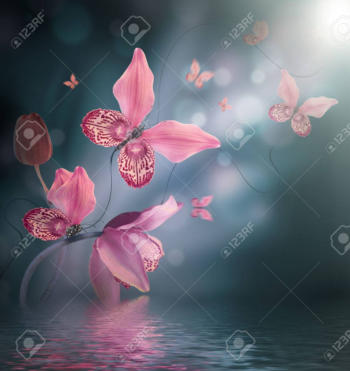 Increibles Mariposas De Los Petalos De Las Orquideas Fondo Floral Flores E Insectos Fotos Retratos Imagenes Y Fotografia De Archivo Libres De Derecho Image 71557558
