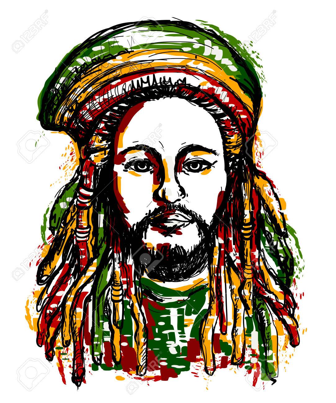Retrato De Rastaman Tema De Jamaica Reggae Concepto De Diseno Arte Del Tatuaje Mano Dibujado Estilo Grunge Art Retro Banner Tarjeta Camiseta Bolsa Impresion Poster Vintage Mano Colorida Ilustracion Vectorial Dibujado Ilustraciones Vectoriales
