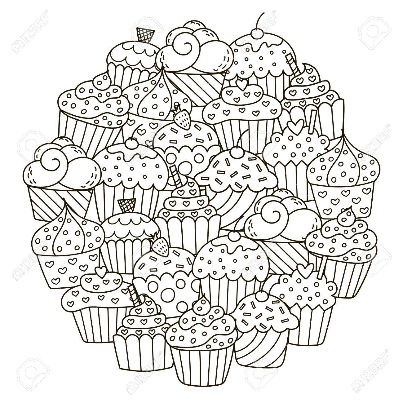 Patron De La Forma Del Circulo Con Las Magdalenas Lindas Para Colorear Ilustraciones Vectoriales Clip Art Vectorizado Libre De Derechos Image 57481998
