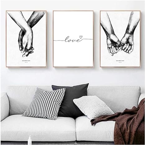 Amazon Com Arte De Pared En Blanco Y Negro Amor Y Mano A Mano Impresion Artistica Moderna Decoracion De Pared Para Dormitorio Decoracion De Pared De Salon Juego De 3 7 9 X 9 8 In