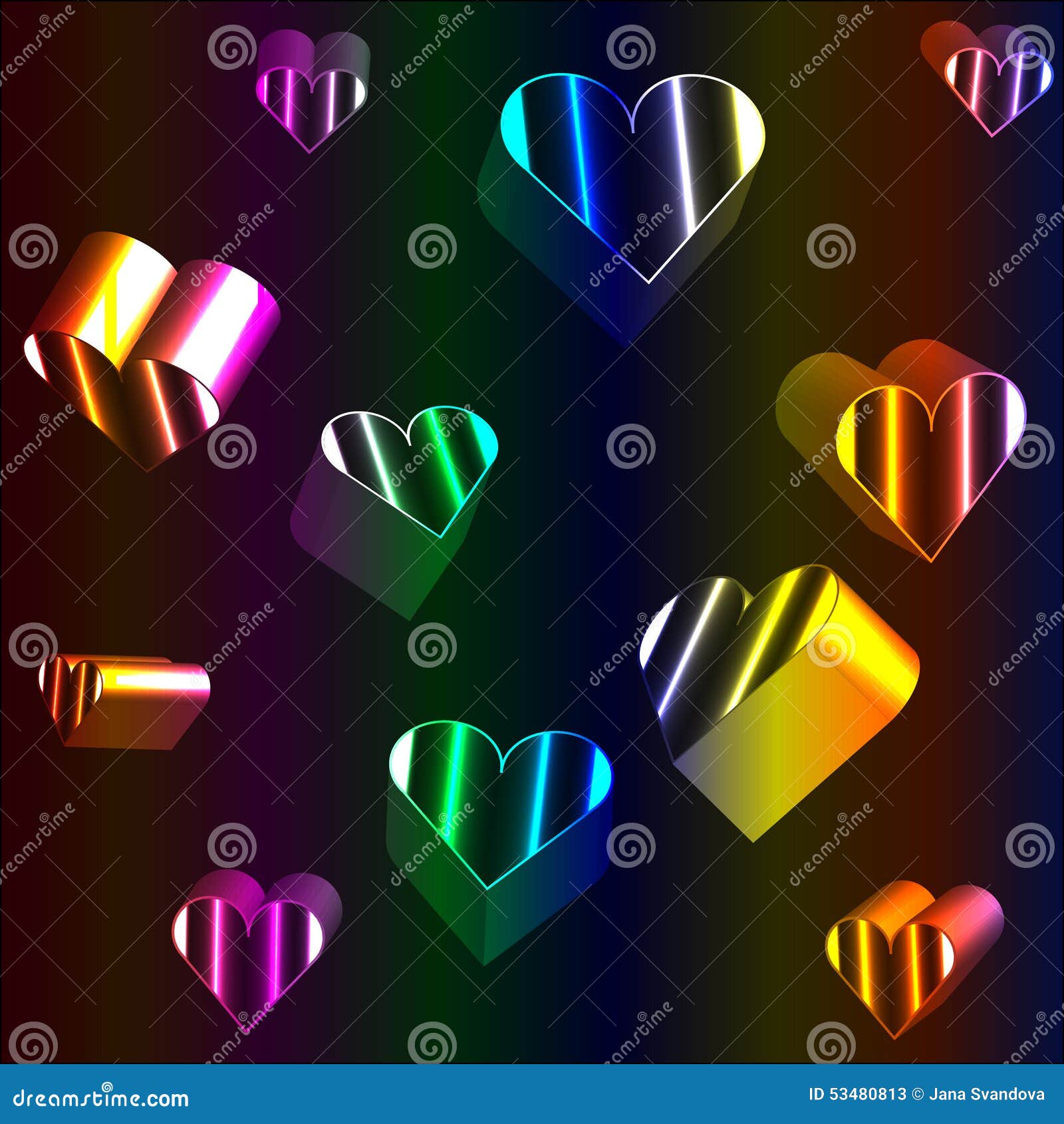 3d Neon Hearts Stock Illustration Illustration Of Falling 53480813