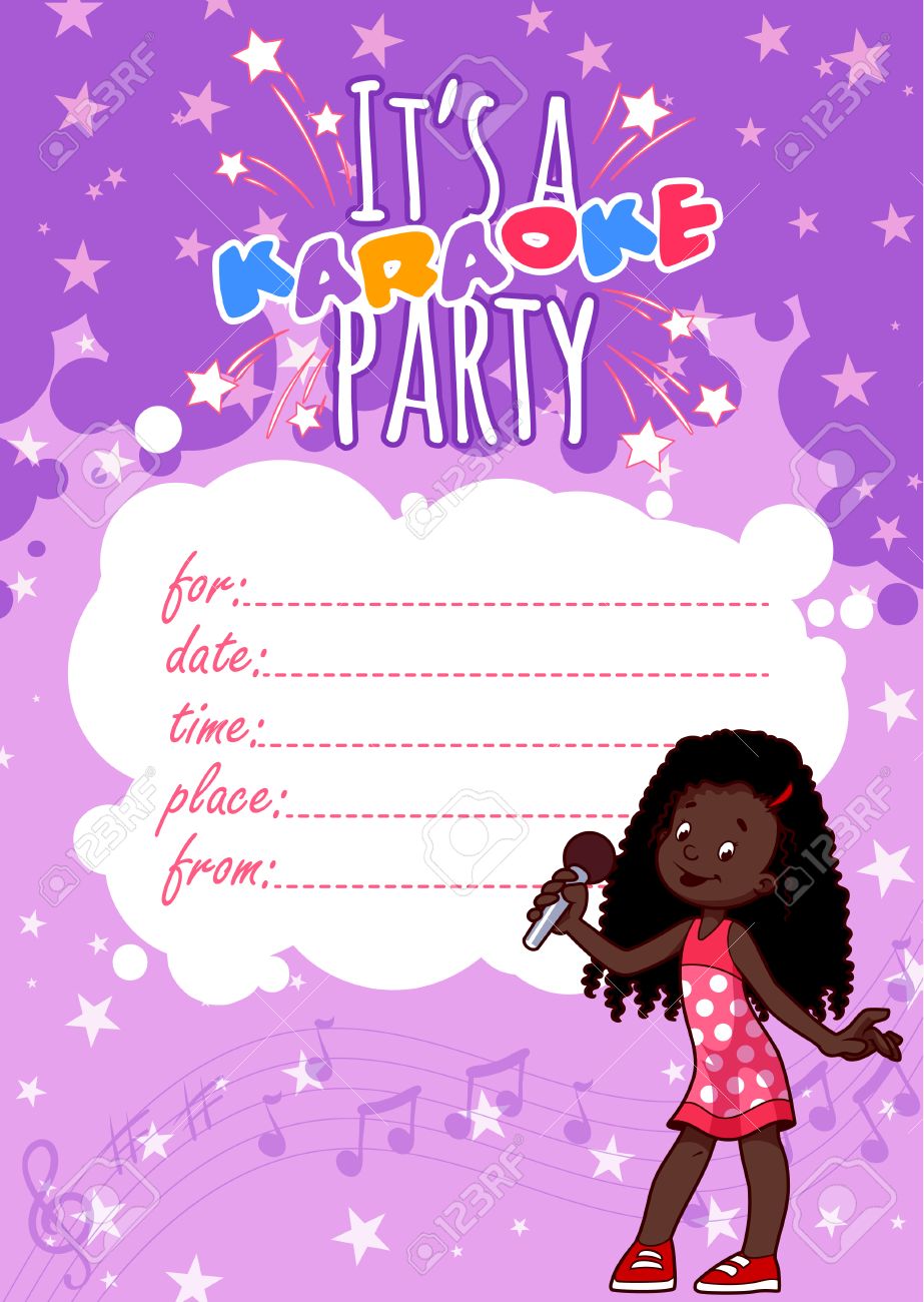 Invitacion A Fiesta De Karaoke Para Ninos En Color Violeta Ilustracion Del Arte Vector De Imagenes Sobre Un Fondo Blanco Ilustraciones Vectoriales Clip Art Vectorizado Libre De Derechos Image 43415896