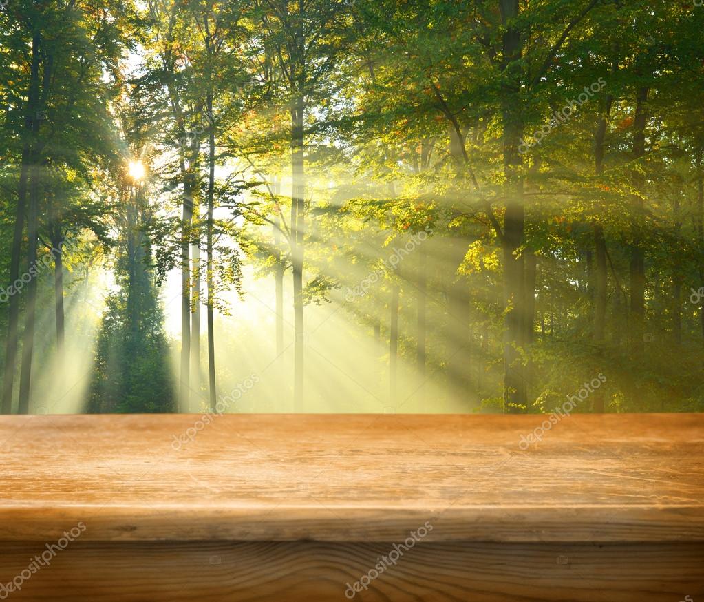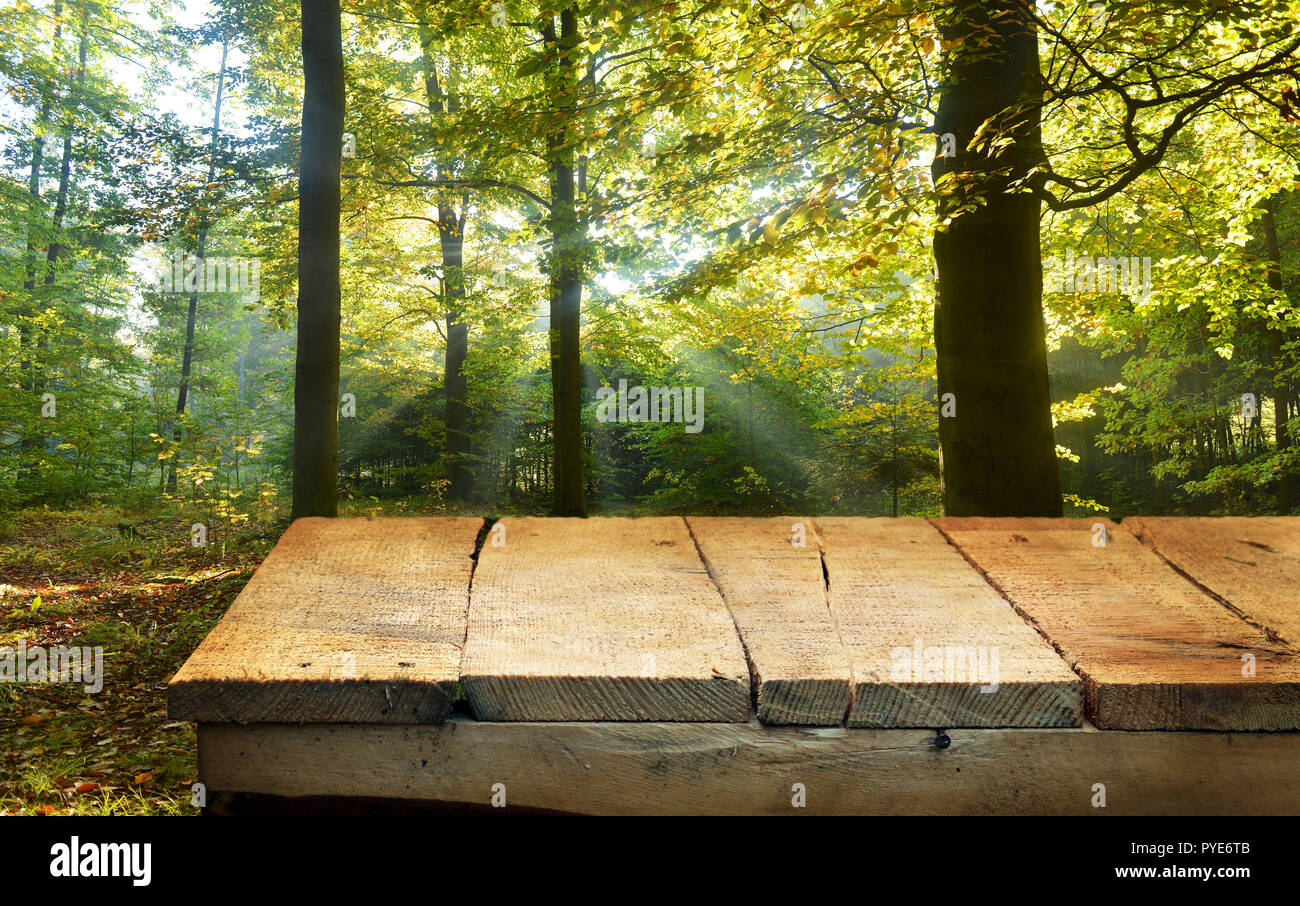 Tabla De Madera Vacias Y Bosque En El Fondo Mostrar Producto Ideal Para Montajes Fotografia De Stock Alamy