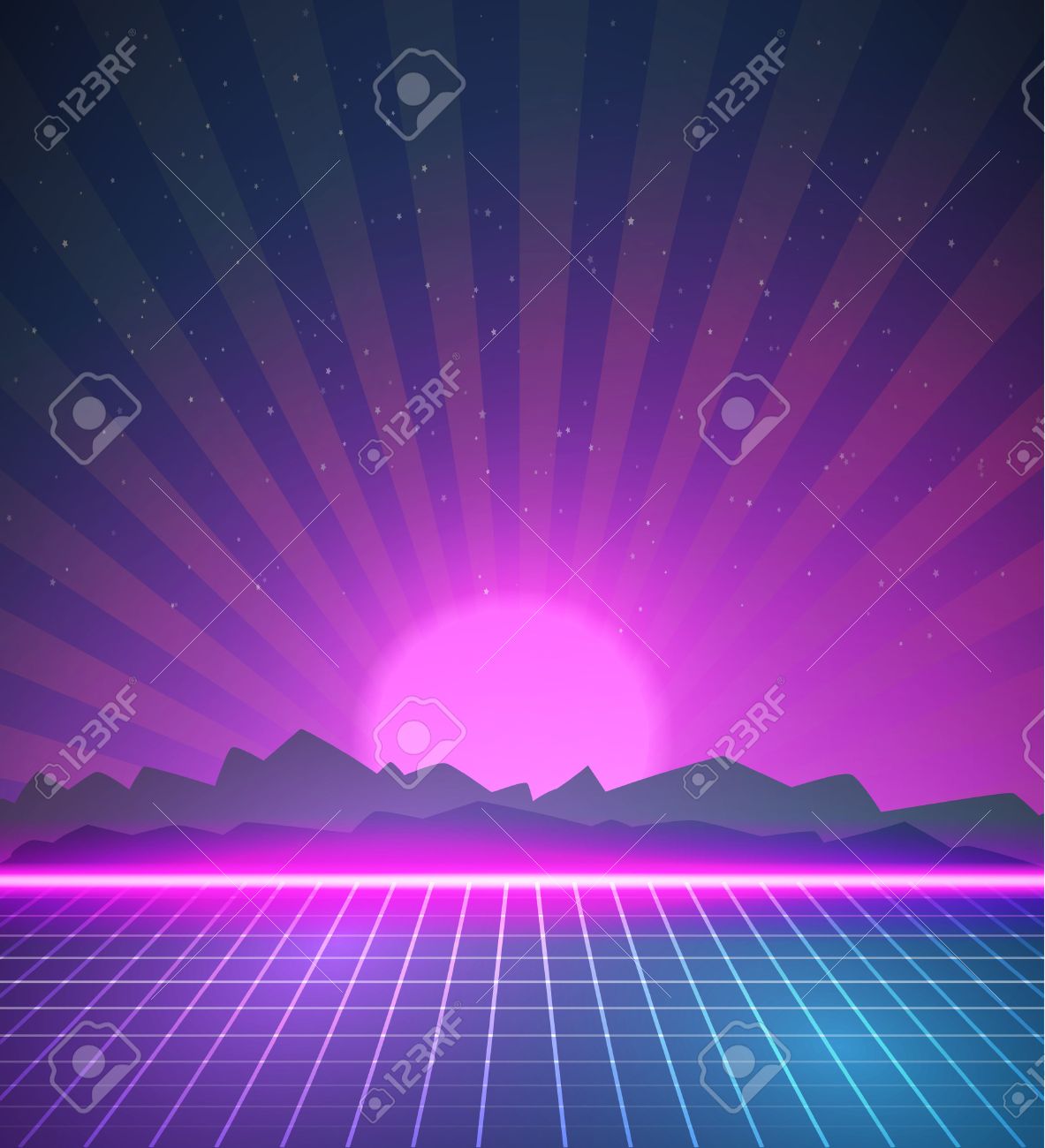 Illustration Of 1980 Neon Poster Retro Disco 80s Background Made In Tron Style With Flares Stars Banco De Imagens Royalty Free Ilustracoes Imagens E Banco De Imagens Image 47818500