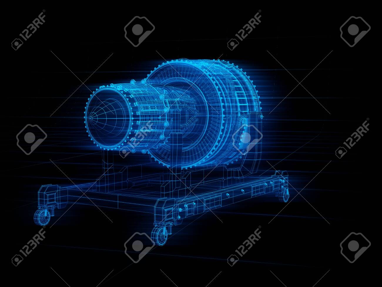Wireframe Rendering Of Turbojet Engine On Black Background Digital Stock Photo Picture And Royalty Free Image Image 128555190