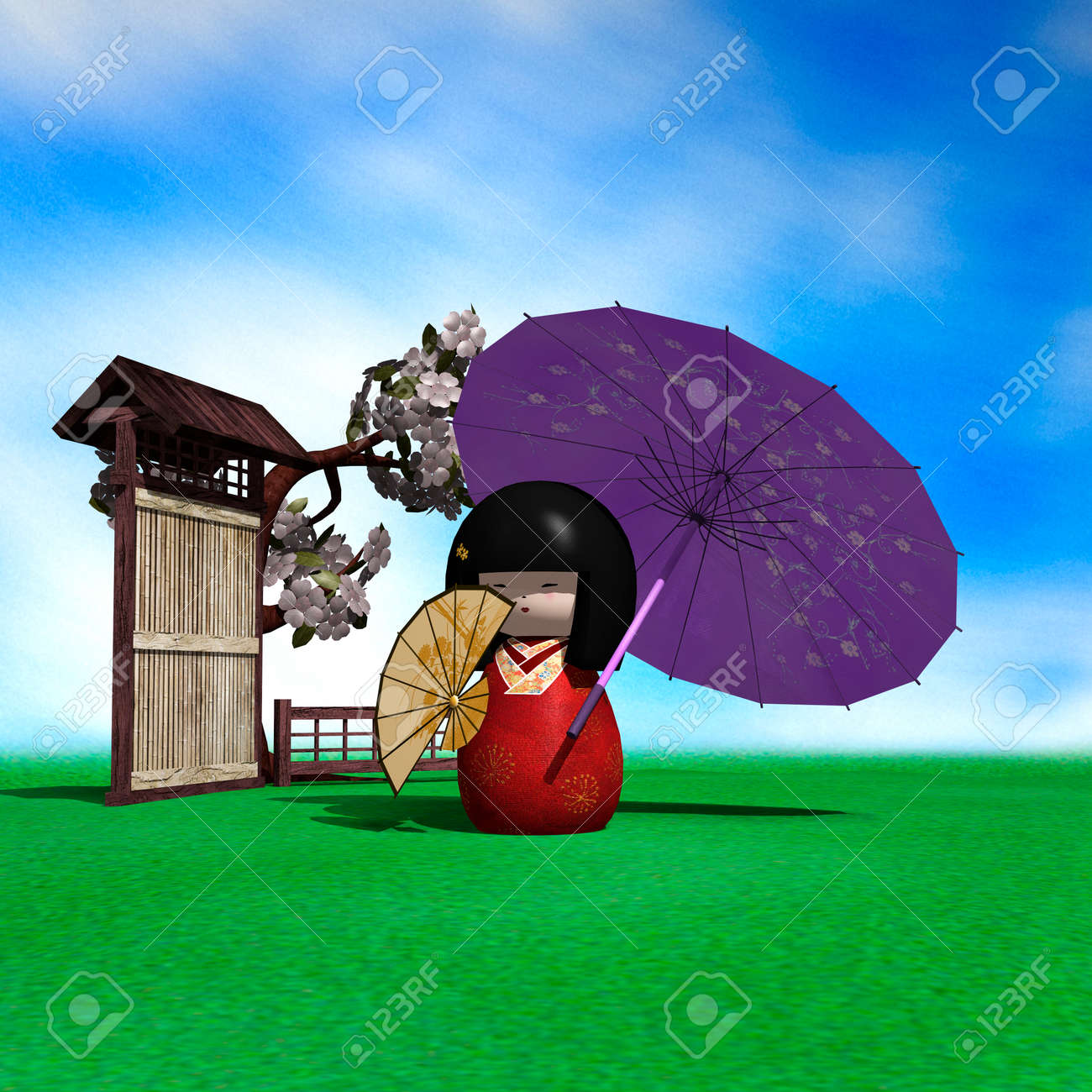 3d Digital Render Of A Kokeshi Japanese Doll On A Summer Meadow Foto Royalty Free Gravuras Imagens E Banco De Fotografias Image 22701824